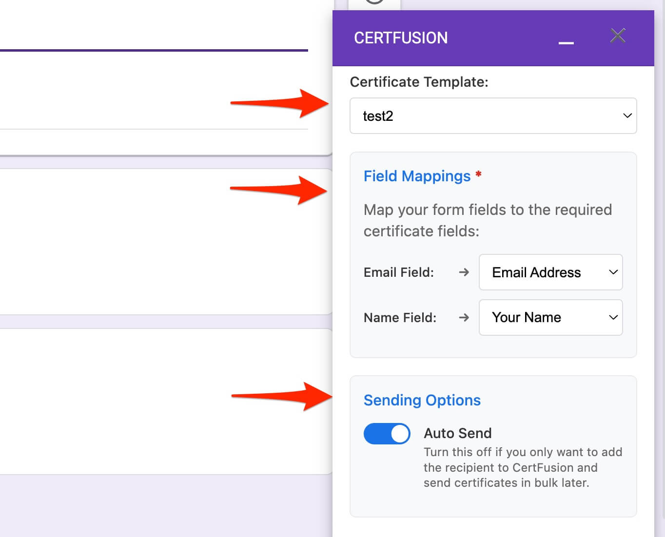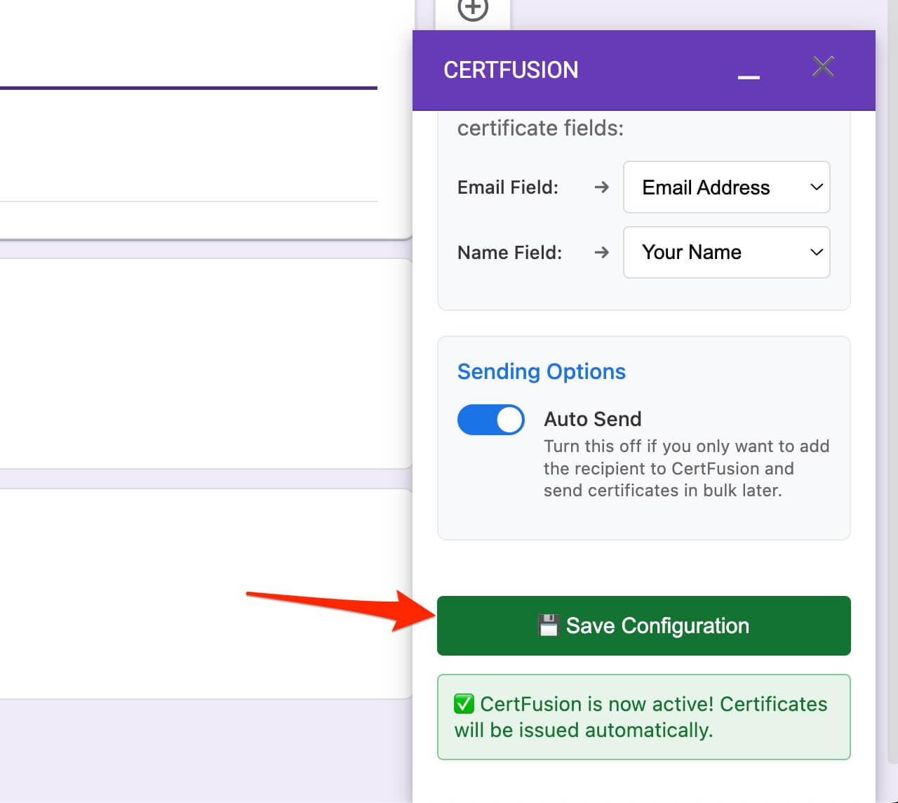- Auto Send: Toggle on to automatically issue certificates upon form