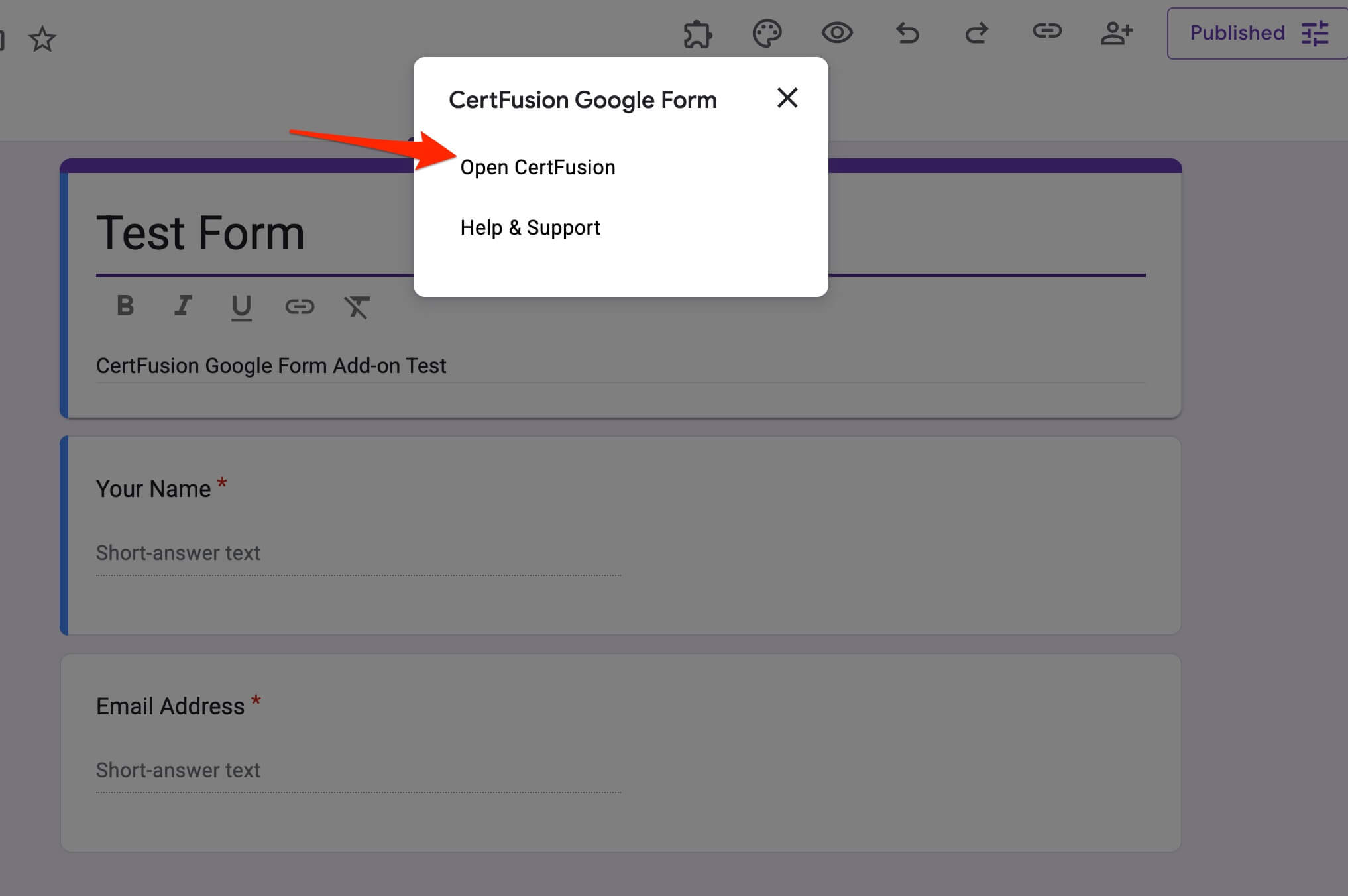 Connect your Google Forms to CertFusion and automatically issue digital certificates when users
