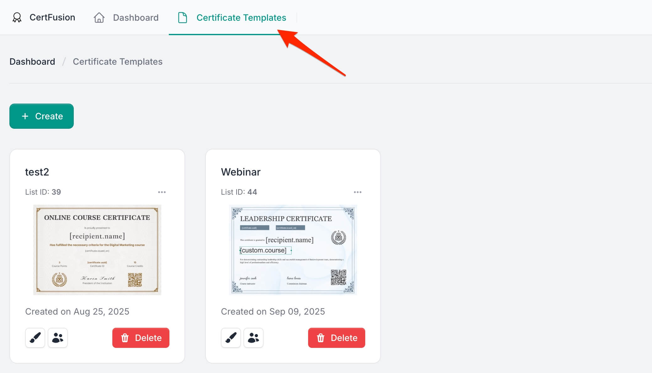 - Navigate to the Manage Integrations page in your CertFusion dashboard.